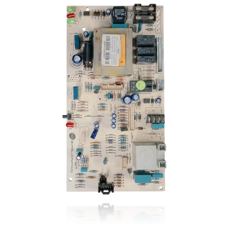 Esta placa de control gestiona el encendido electrónico, regula la temperatura y asegura la comunicación eficiente entre el termostato y los actuadores de la caldera. Su correcto funcionamiento es crucial para mantener la eficiencia y seguridad del sistema, regulando la combustión y el flujo de gas de manera óptima. Además, su diseño robusto y confiable está pensado para soportar las exigencias de un ambiente de alta temperatura.